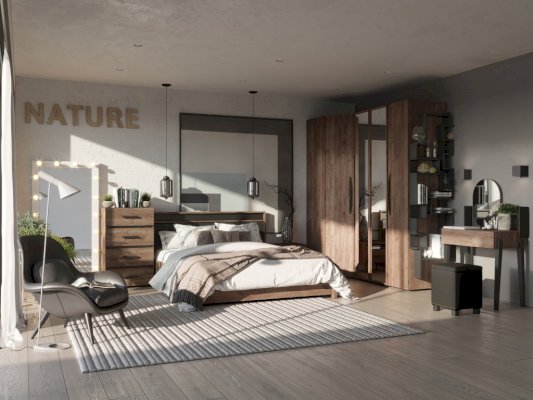 Для спальни отлично подойдет высокий комод Nature 45. Гладкие фасады ящиков в теплом декоре с контрастными черными боковыми планками снизу делают его по-настоящему особенным. Четыре выдвижных ящика способны вместить все необходимое, а компактная конструкция сэкономит место в комнате. Ящики легко открываются благодаря направляющим полного выдвижения. Они быстро и легко устанавливаются при сборке комода. Регулируемые опоры компенсируют незначительные неровности пола.