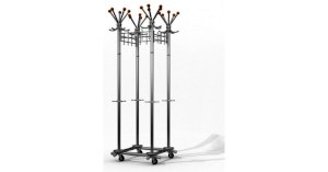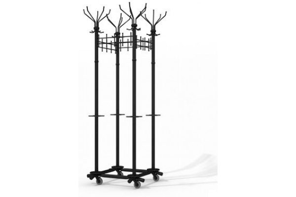 Вешалка выполнена из оцинкованной стали с полимерным покрытием. Крючки вешалки выполнены из трубы диаметром 10 мм. Вешалка поставляется в разобранном виде, в картонной таре. Эта модель вешалки может использоваться как фрагмент для обустройства гардеробных комнат.
