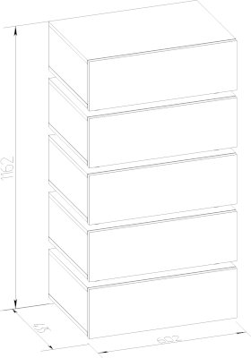 Для маленькой гостиной отлично подойдет высокий и узкий комод Nature 6. Гладкие фасады ящиков в теплом декоре с контрастными черными боковыми планками снизу делают его по-настоящему особенным. Пять выдвижных ящиков глубиной 14 см способны вместить все необходимое, а компактная конструкция сэкономит место в комнате. Ящики легко открываются за свес. Регулируемые опоры компенсируют незначительные неровности пола. Внимание, комод необходимо крепить к стене!
