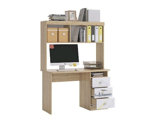 Стильный стол «Форсаж» – мечта каждого мальчика. Компактный стол прекрасно впишется даже в маленькое пространство детской комнаты. Удобная столешница подойдет как для письма, так и для занятий на компьютере или ноутбуке. Открытые полки и закрытые ниши надстройки стола хорошо подходят для хранения учебников и школьных принадлежностей. В 3-х выдвижных ящиков поместится все, что необходимо для учебы и творчества. Эффектный принтерный рисунок на фасадах выдержан в общем стилистическом решении. Рисунок устойчив к истиранию и ультрафиолету.