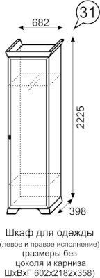 • Размер:ШхВхГ 602 х 2225 х 358 мм