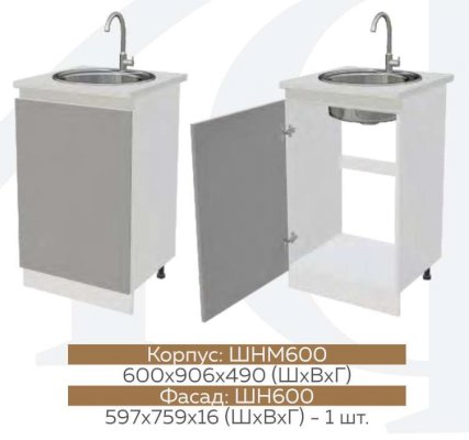 ШНМ1Д600 Шкаф нижний под мойку Графит софт/Белый глянец холодный