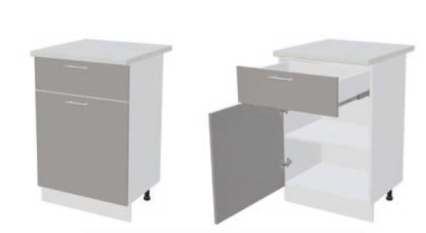 ШН1Д1Я600 Шкаф нижний с 1-м ящиком и 1-й дверью Белый снег софт/Графит софт