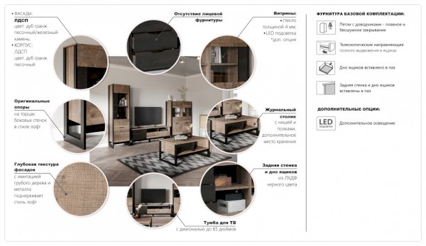 Модульная гостиная Стокгольм Дуб гранж песочный/Железный камень (Империал) - за 44 840 руб. в Сергиевом Посаде. Купите на сайте sergiev-posad.onlinemarketmebeli.ru или по телефону 8(800)505-30-63 уже сегодня! Уточнить наличие, комплектацию, актуальную цену можно бесплатно у менеджера ежедневно. Закажите Модульная гостиная Стокгольм Дуб гранж песочный/Железный камень (Империал) до конца акции! Доступна покупка в кредит, рассрочку. Доставим со склада или на заказ.
