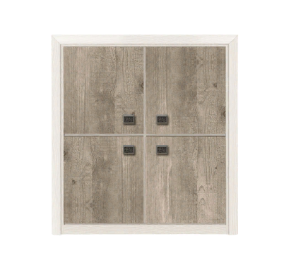 Состоит из четырех отделений за распашными дверями, в каждом отделении по одной вкладной полке.