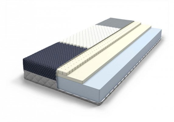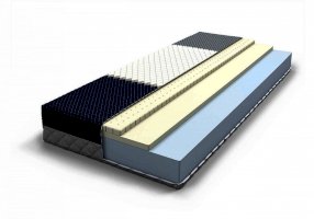 Матрас на основе чередующихся слоев натурального перфорированного латекса, материала с эффектом памяти и Foam.