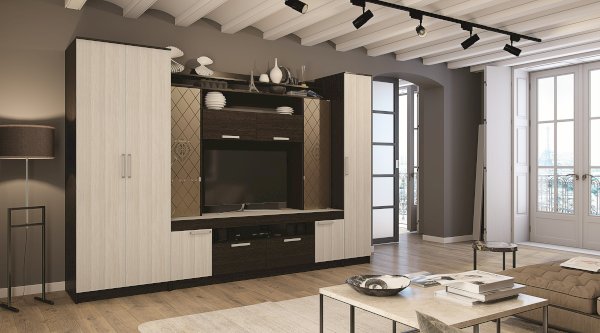 Лаконичная модель двухстворчатого шкафа Фиеста справится с размещением небольшого гардероба. При этом модель содержит достаточно вместительную зону с хромированной штангой для верхней одежды или одежды на вешалках, а также верхнее и нижнее отделение для хранения вещей. Изделие изготовлено из высококачественной ЛДСП в классическом сочетании цветов венге и лоредо.