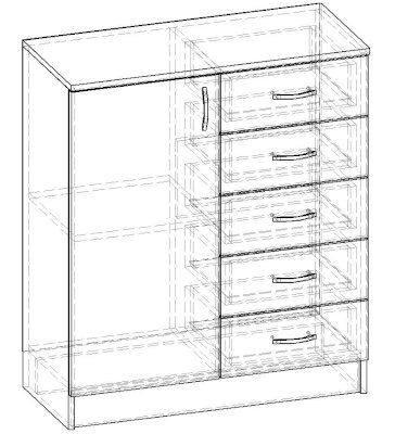 • Корпус, полки и фасады изготовлены из ЛДСП 16 мм с кромкой ПВХ 0,4 мм.