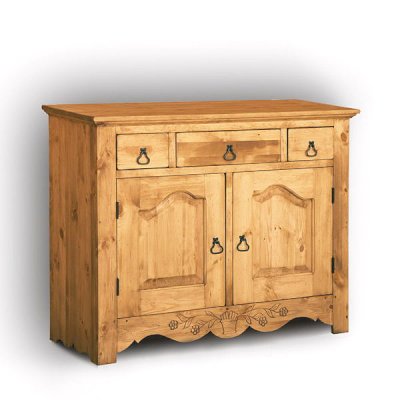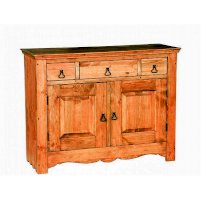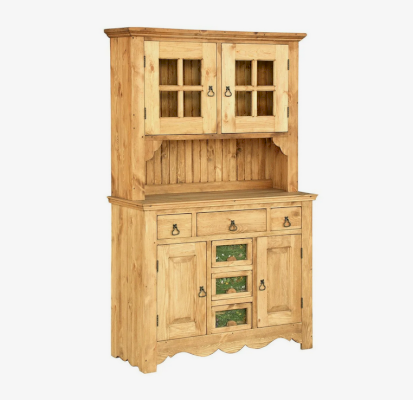 Невероятно красивый, вместительный буфет в стиле Прованс, состоящий из нижней закрытой тумбы и верхней части с двумя резными дверцами. За стеклянными дверцами можно хранить праздничные сервизы, семейные раритеты, интерьерные вещицы.  Задние стенки всех буфетов набраны из дощечек массива сосны. Также из массива сосны набраны днища ящиков. В конструкции нет элементов из фанеры, ДСП, или МДФ.