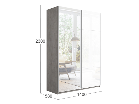 Двухдверный шкаф-купе с 1 зеркалом и стеклом Траст 1400 (Трия)