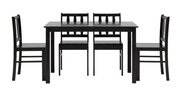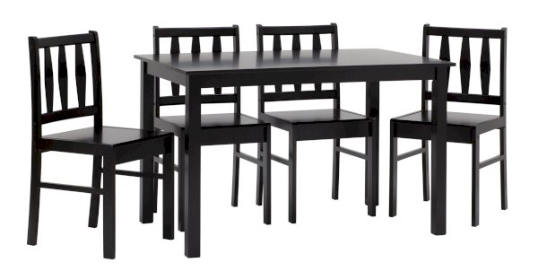 Обеденная группа из массива гевеи, продается комплектом из стола и четырех стульев. Стулья и ножки стола выполнены из массива дерева гевеи, которое отличается высокой влагостойкостью, устойчивостью к изменениям температур и прочностью.
