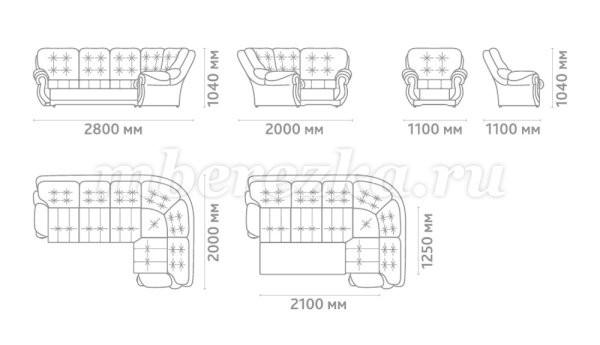 Размер дивана : 2800*2000*1040 мм