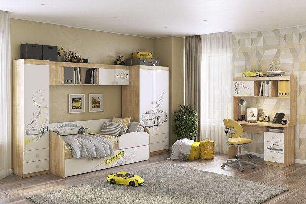 Дополнительное удобное спальное место или большой выдвижной ящик для хранения постельного белья и игрушек, на выбор, решать вам. Стильный принтерный рисунок на фасаде. Детская «Форсаж» - это стильная, современная детская, которая понравится каждому ребенку. Рисунок устойчив к истиранию и ультрафиолету.