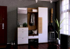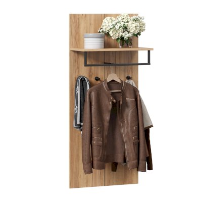 • Под полкой закреплена вешалка-опора (штанга-менсолодержатель) для плечиков и 4 крючка
