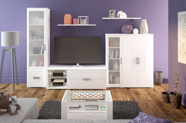 Материал фасада: МДФ 16 мм с фрезеровкой «Орхидея», стекло Сатин 4 мм