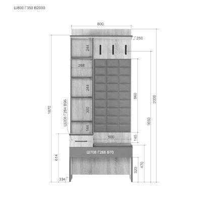 Размеры (ШхГхВ): 800х350х2000 мм