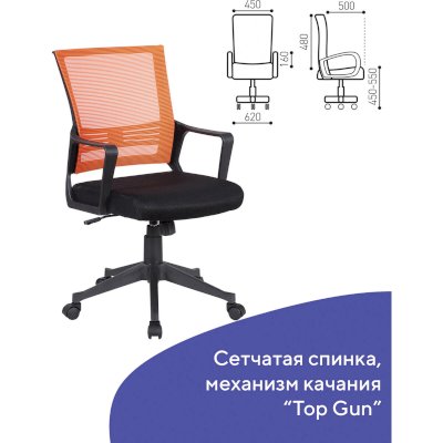 Спинка кресла выполнена из прочного сетчатого акрила с оригинальным "узором". Материал обладает высокой воздухопроницаемостью, легко чистится, способен подстраиваться под физиологические изгибы спины, при этом сохраняет форму и не растягивается. Залогом комфортного использования кресла также является эргономичная форма надёжного пластикового каркаса.