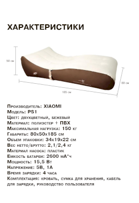 Надувная кровать для отдыха PS 1 (Xiaomi) - за 10 023 руб. в Сергиевом Посаде. Купите на сайте sergiev-posad.onlinemarketmebeli.ru или по телефону 8(800)505-30-63 уже сегодня! Уточнить наличие, комплектацию, актуальную цену можно бесплатно у менеджера ежедневно. Закажите Надувная кровать для отдыха PS 1 (Xiaomi) до конца акции! Доступна покупка в кредит, рассрочку. Доставим со склада или на заказ.