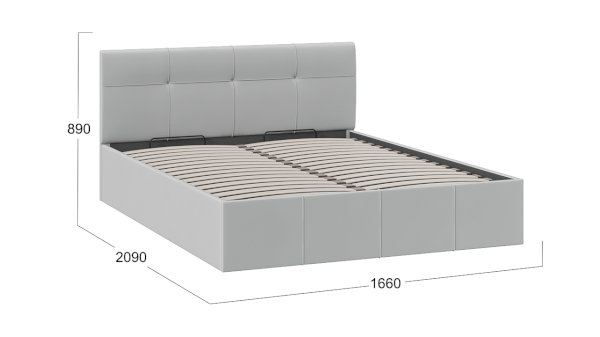 В конструкции кровати предусмотрен подъемный механизм и заглушина, состоящая из одной детали ДВП, которая располагается в изножье и не имеет крепление к каркасу кровати. Дно из ДВП поможет организовать место для хранения и сохранить порядок в кровати.