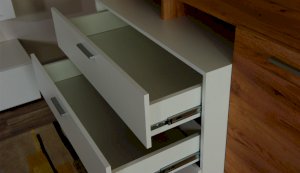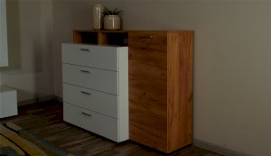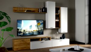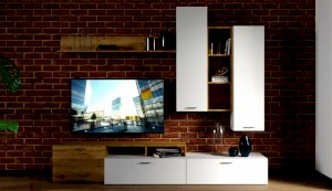 Стенка выполнена с учетом новейших дизайнерских решений - сочетание теплого оттенка дерева с четкой древесной текстурой и белого цвета, разноуровневые модули, скрытая крепежная фурнитура. Все эти элементы создают визуальную легкость и компактность стенки. Мебель легко устанавливается и регулируется по высоте. Широкая тумба для ТВ позволит разместить телевизор любой диагонали, полки послужат для размещения других медиа устройств. Стенку дополняет вместительный комод с ящиками полного выдвижения. Мебель выполнена из высококачественных экологичных материалов.