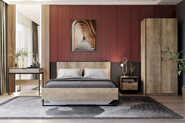 Стол из коллекции ФОЛК легко впишется в интерьер спальни в стиле Лофт, придав ей современный и монументальный вид. Черная лаконичная ручка и металлические опоры подчеркивают оригинальный дизайн мебели, а черная кромка эффектно выделяет фасад изделия.