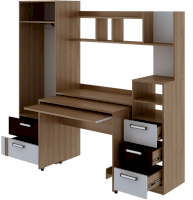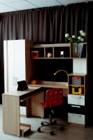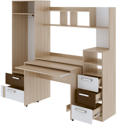 • Шкаф снабжен торцевым вешалом для одежды на плечиках и полку над ним + 2 выдвижных ящика.