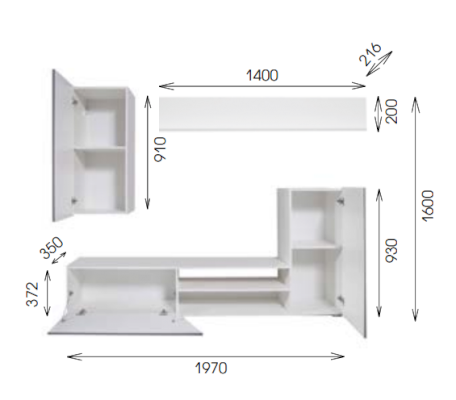 Шкаф «Прага-6» не разбивается на модули и продается единым комплектом. Шкаф навесной крепится к стене на высоте по усмотрению покупателя. Рекомендованная высота комплекта в сборке-1600 мм.