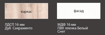 Каркас: ЛДСП 16 мм в декоре «Дуб Сакраменто»