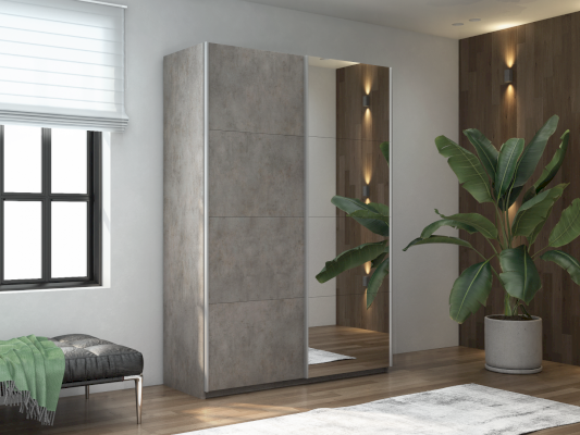 Шкаф-купе 2-х дверный Прайм ДСП/Зеркало 1200х2300х570 мм Бетон