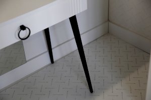 Металлические ручки дополняют общий дизайн, придавая ему эстетичный и современный вид. Сочетание черного и белого цветов делает этот туалетный столик универсальным и легко вписывающимся в любой интерьер.