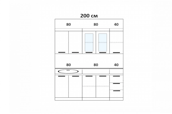 Высота верхних шкафов: 685 мм