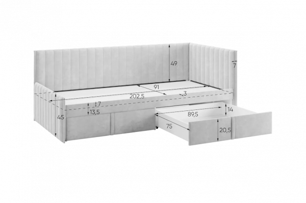 Кровать с ящиками Твикс (Тахта) 90х200 см — это стильное и функциональное решение для вашего интерьера. Она сочетает в себе элегантный дизайн и практичность. Удобное мягкое изголовье и корпус делают эту кровать не только комфортной, но и безопасной для использования в любых условиях.