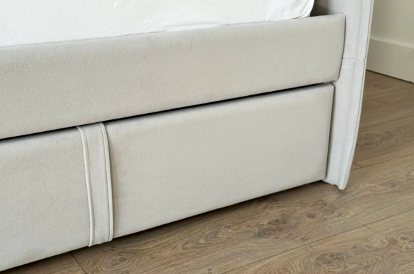 Вместительные выкатные ящики предоставляют дополнительные возможности для хранения постельного белья, одежды или других важных вещей, что особенно актуально для небольших помещений. Настил из ЛДСП гарантирует удобство и надежность использования.
