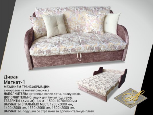 Диван «Магнат-1» 1,4 асм - за 48 477 руб. в Сергиевом Посаде. Купите на сайте sergiev-posad.onlinemarketmebeli.ru или по телефону 8(800)505-30-63 уже сегодня! Уточнить наличие, комплектацию, актуальную цену можно бесплатно у менеджера ежедневно. Закажите Диван «Магнат-1» 1,4 асм до конца акции! Доступна покупка в кредит, рассрочку. Доставим со склада или на заказ.