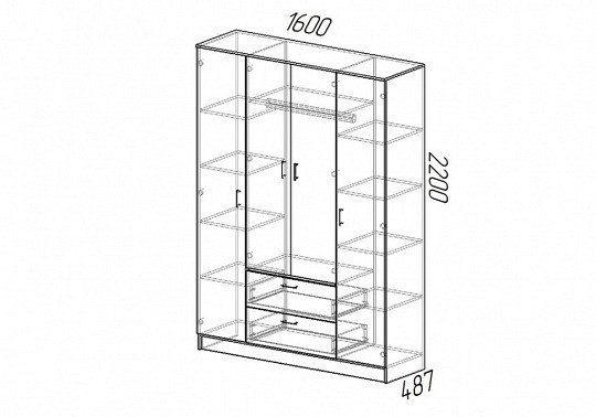 Наполнение шкафа выдвижные ящики / зеркало / штанга