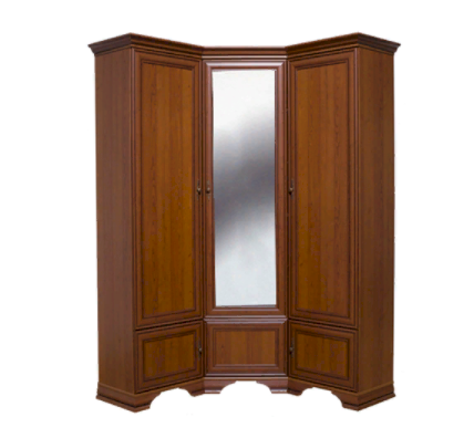 Высокий и компактный угловой шкаф Кентаки – мебель, позволяющая организовать комфортную систему хранения гардероба даже в самом небольшом пространстве. Она незаменима в прихожих, небольших гостиных или спальнях. Выполненная в классическом стиле, мебель универсальна – она будет гармонично смотреться в любом интерьере, дополняя его собой.