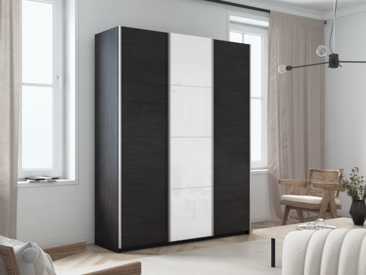 Серия «Прайм» отличается доступностью и функциональностью Навесные двери и лаконичная отделка фасадов создают прогрессивный дизайн. Подойдет тем, кто любит компактную и изящную мебель. Алюминиевые ручки и верхний ходовой профиль обеспечивают легкость и прочность конструкции. Многолетняя безупречная работа благодаря высококачественной немецкой фурнитуре Hettich. Прочная ПВХ-кромка толщиной до 1 мм защищает края от сколов и повреждений. Плавный ход дверей обеспечивает надежная система Hettich Top Line M. Дополнительно можно установить доводчики. Снаружи нет заглушек и винтов благодаря стяжечной системе крепления полок на флипперах, а корпус усилен эксцентриковыми стяжками. Навесные двери скрывают раздвижной механизм от глаз. Они надежно удерживаются в направляющих и не соскакивают. Каждая дверь поделена на 4 секции Секции расставляются в произвольном порядке, создавая новый дизайн фасада.