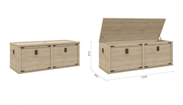 Сундук - стильный и функциональный элемент из системы Валенсия, настоящий хранитель сокровищ. Украшением служат стилизованные металлические ручки MARINE бронзового цвета и декоративные элементы в тон. Декоративные накладки и профиль из МДФ по периметру придают модулю более эффектный и надежной вид. Вместительный ящик глубиной 47 см позволит быстро навести порядок. Крышка открывается за ручки и надежно фиксируется в открытом положении, благодаря газлифту. Можно заказать дополнительно мягкую подушку и превратить сундук в мини-диван с двумя посадочными местами. Идеально компонуется со всеми модулями системы Валенсия.