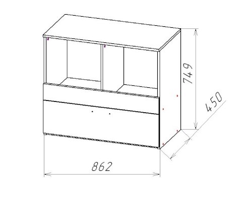 Комод с двумя дверками и ящиком. Направляющие НПВ шариковые.