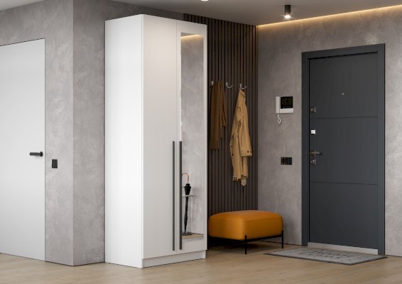 Дополнительно шкаф можно укомплектовать зеркалом и антресолью.