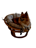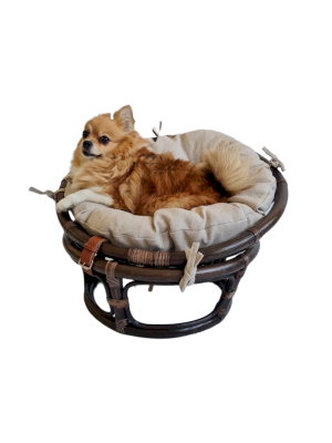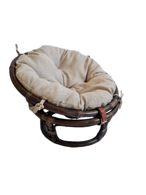 Стильное и удобное кресло Папасан из ротанга состоит из основания и чаши-кокона, которые скрепляются кожаными ремнями, подушка на завязках.