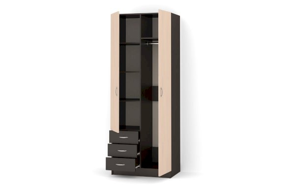 Данное изображение представлено в следующих цветах ЛДСП: корпус - Венге Цаво, фасады - Венге Цаво / Дуб молочный.