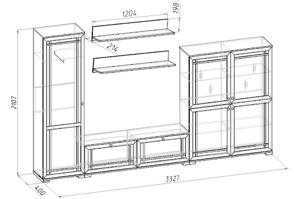 • Размер:ШхВхГ 400 х 2107 х 400 мм