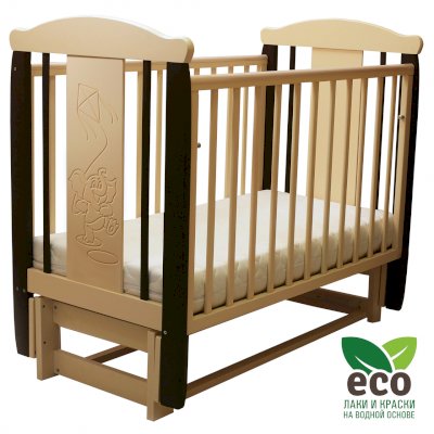 Кроватка "Соня 05" имеет механизм качания продольный маятник. Механизм качания фиксируется. Возможен вариант кровати с ящиком.