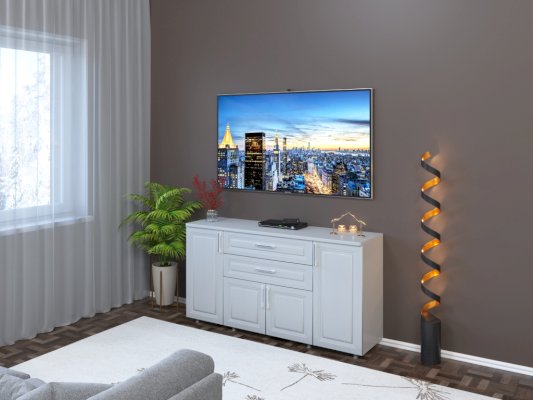 Комод из коллекции системной мебели Валенсия. Эта мебель отличается элегантным стилем и позволяет создавать классические предметы интерьера для гостиной, столовой, спальни или офиса. У модели четыре распашные дверцы и два практичных ящика.