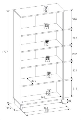 Максимальная нагрузка на полку: 20 кг
