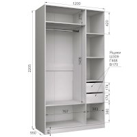 Наполнение: Петли с доводчиками, 2 ящика на шариковых направляющих, полки, штанга