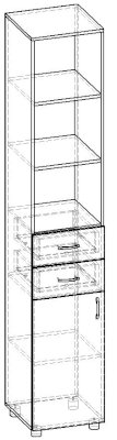 Стеллаж 1 дверь и 2 ящика Лидер СТ.034.400-01 (Баронс)