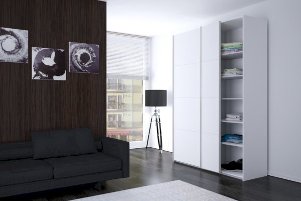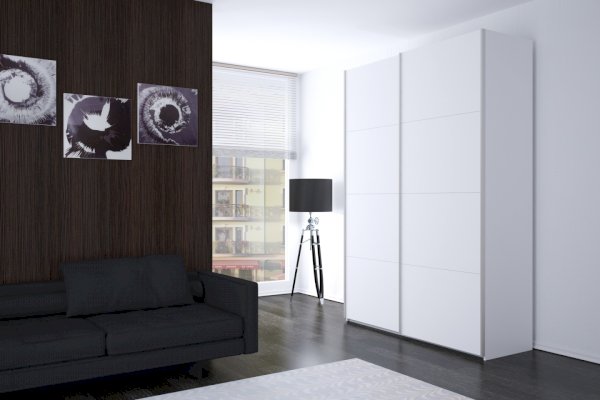 Серия «Прайм» отличается доступностью и функциональностью Навесные двери и лаконичная отделка фасадов создают прогрессивный дизайн. Подойдет тем, кто любит компактную и изящную мебель. Алюминиевые ручки и верхний ходовой профиль обеспечивают легкость и прочность конструкции. Многолетняя безупречная работа благодаря высококачественной немецкой фурнитуре Hettich. Прочная ПВХ-кромка толщиной до 1 мм защищает края от сколов и повреждений. Плавный ход дверей обеспечивает надежная система Hettich Top Line M. Дополнительно можно установить доводчики. Снаружи нет заглушек и винтов благодаря стяжечной системе крепления полок на флипперах, а корпус усилен эксцентриковыми стяжками. Навесные двери скрывают раздвижной механизм от глаз. Они надежно удерживаются в направляющих и не соскакивают. Каждая дверь поделена на 4 секции Секции расставляются в произвольном порядке, создавая новый дизайн фасада.