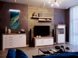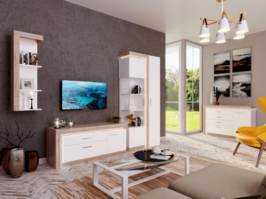 В комплекте можно приобрести светодиодную подсветку, навесную полку или зеркало (только в цвете Дуб сакраменто/ Белый снег глянец).